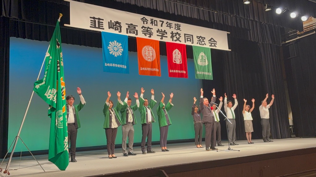 400人以上の同窓生が集い盛大に開催することが出来ました。今年度は同窓会長交代という節目の年。長年にわたり同窓会長を務めてこられた進藤中会長の功績を称え感謝状と記念品を贈るセレモニーも行われました。また、アトラクションとして催した韮高吹奏楽部とMOSのコラボ演奏や大抽選会も、ご来場いただいた皆様の心に残るものになったのではないかと思います。関係各位のお力添えをいただき、無事に同窓会・懇親会を終えることが出来ました。